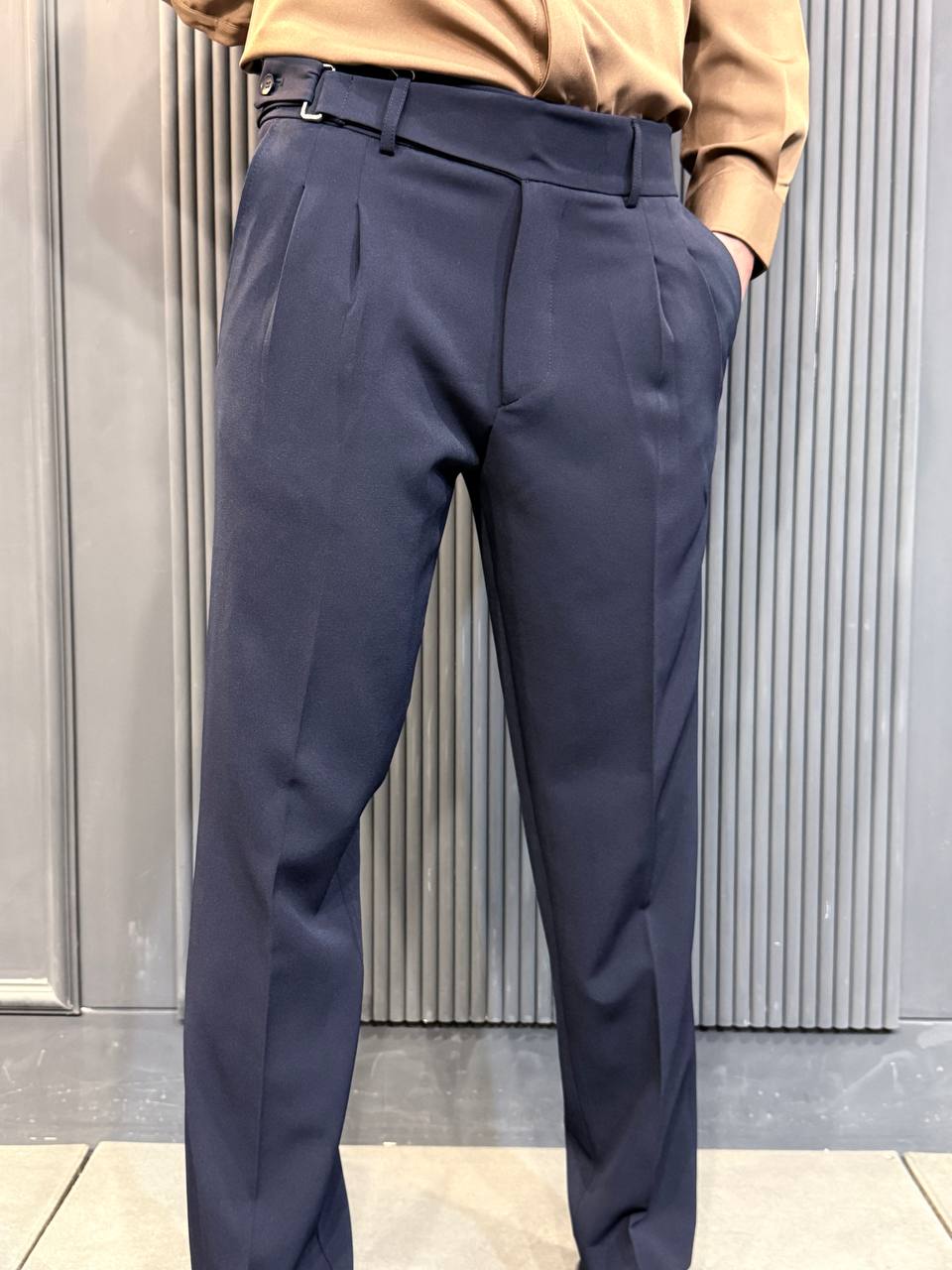 درباره شلوار مام پارچه ای کمر ایتالیایی برند POLIZEL رنگ سورمه ای سایز 33