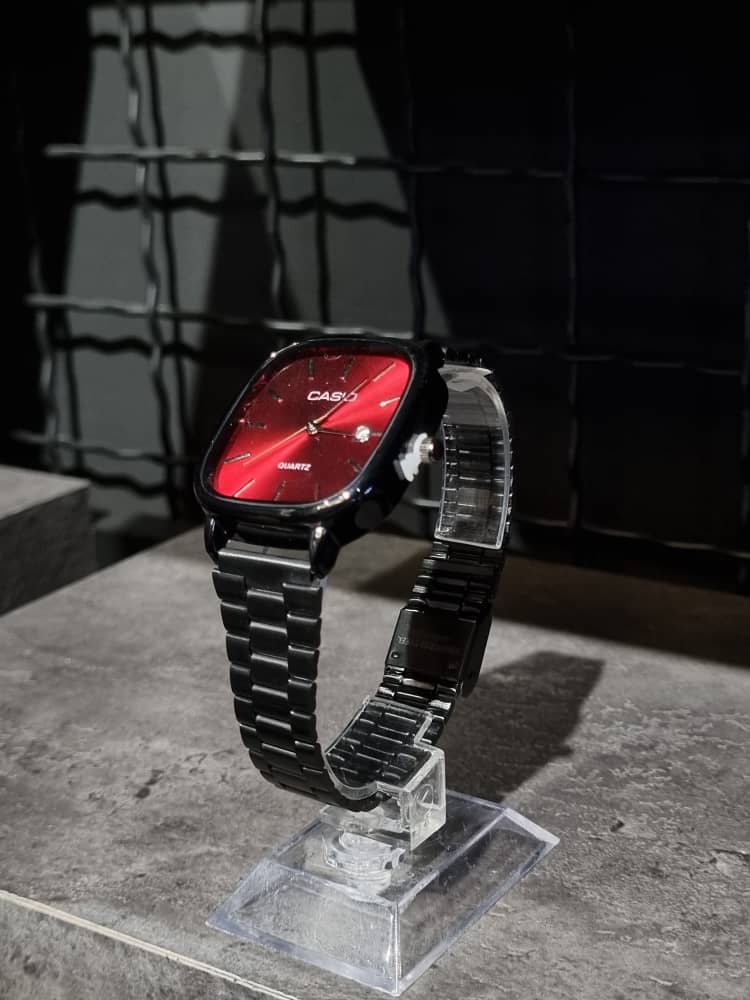 ساعت فلزی CASIO صفحه مربعی رنگ مشکی/صفحه قرمز