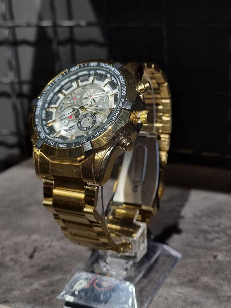 درباره ساعت فلزی برند PARADISE رنگ طلایی/صفحه نقره ای