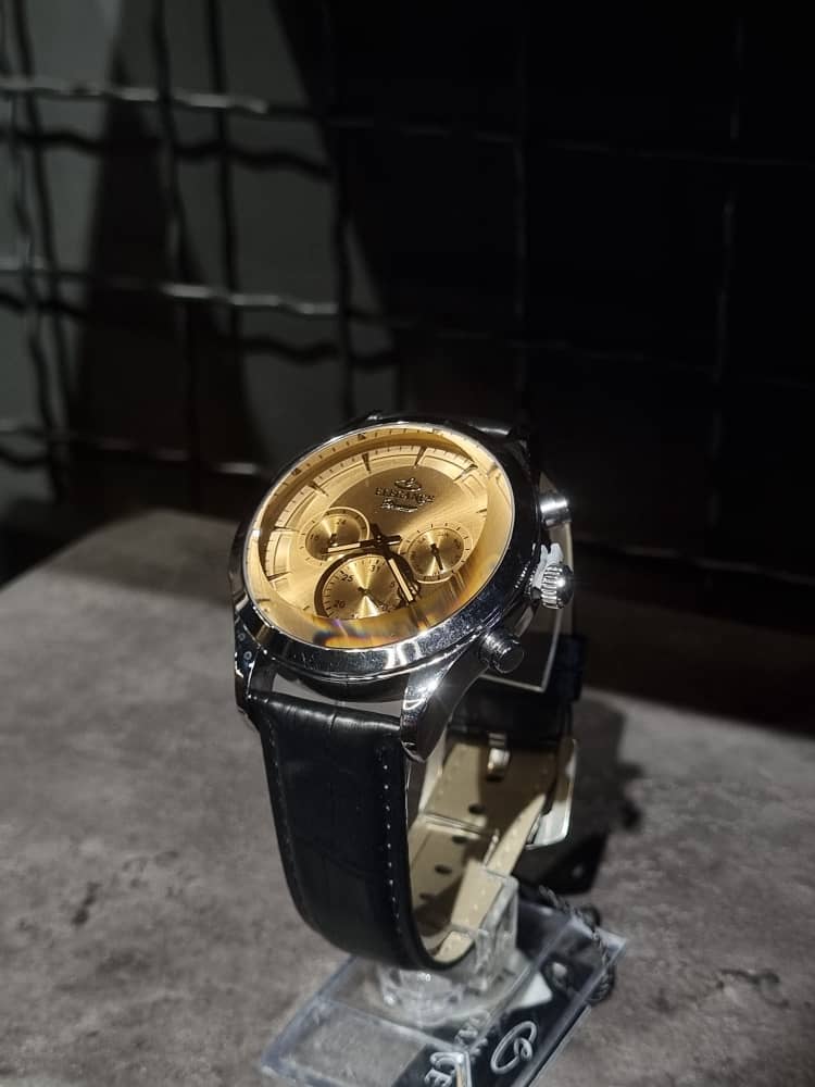 درباره ساعت چرم برند ELEGANCE رنک مشکی / صفحه طلایی کد2