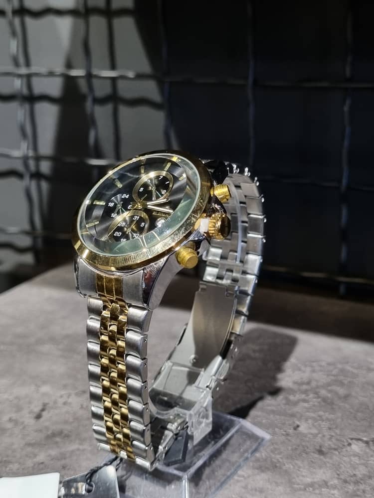 ساعت فلزی برند ELEGANCE رنگ نقره ای طلایی / صفحه مشکی کد1