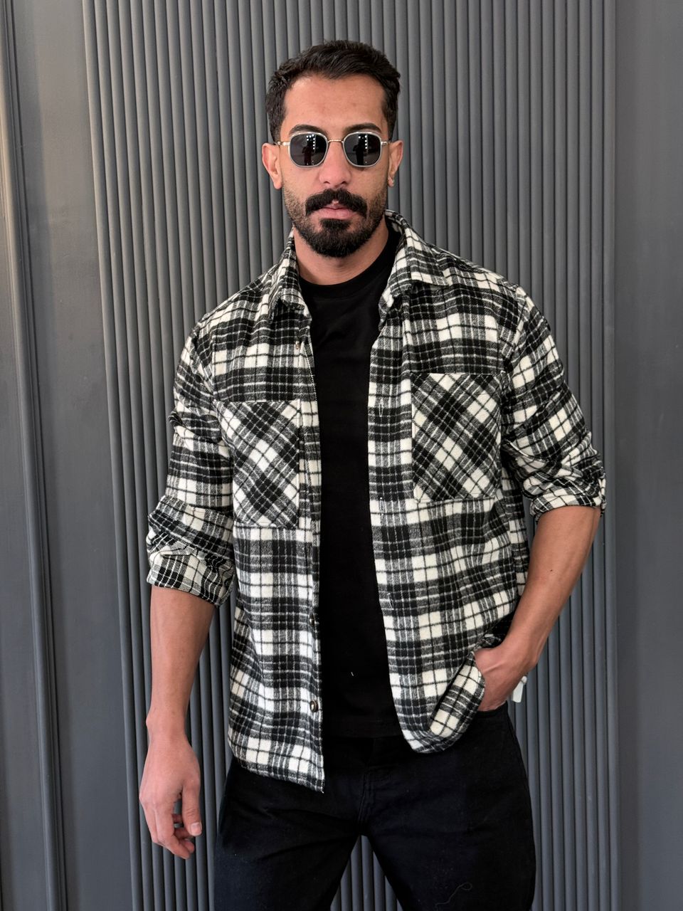 پیراهن کشمیر طرح چهار خونه کد 12450 رنگ سیاه وسفید سایز XL