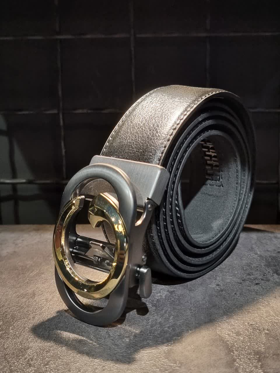 درباره کمربند چرم اعلا ریلی طرح G کد 12839 رنگ مشکی