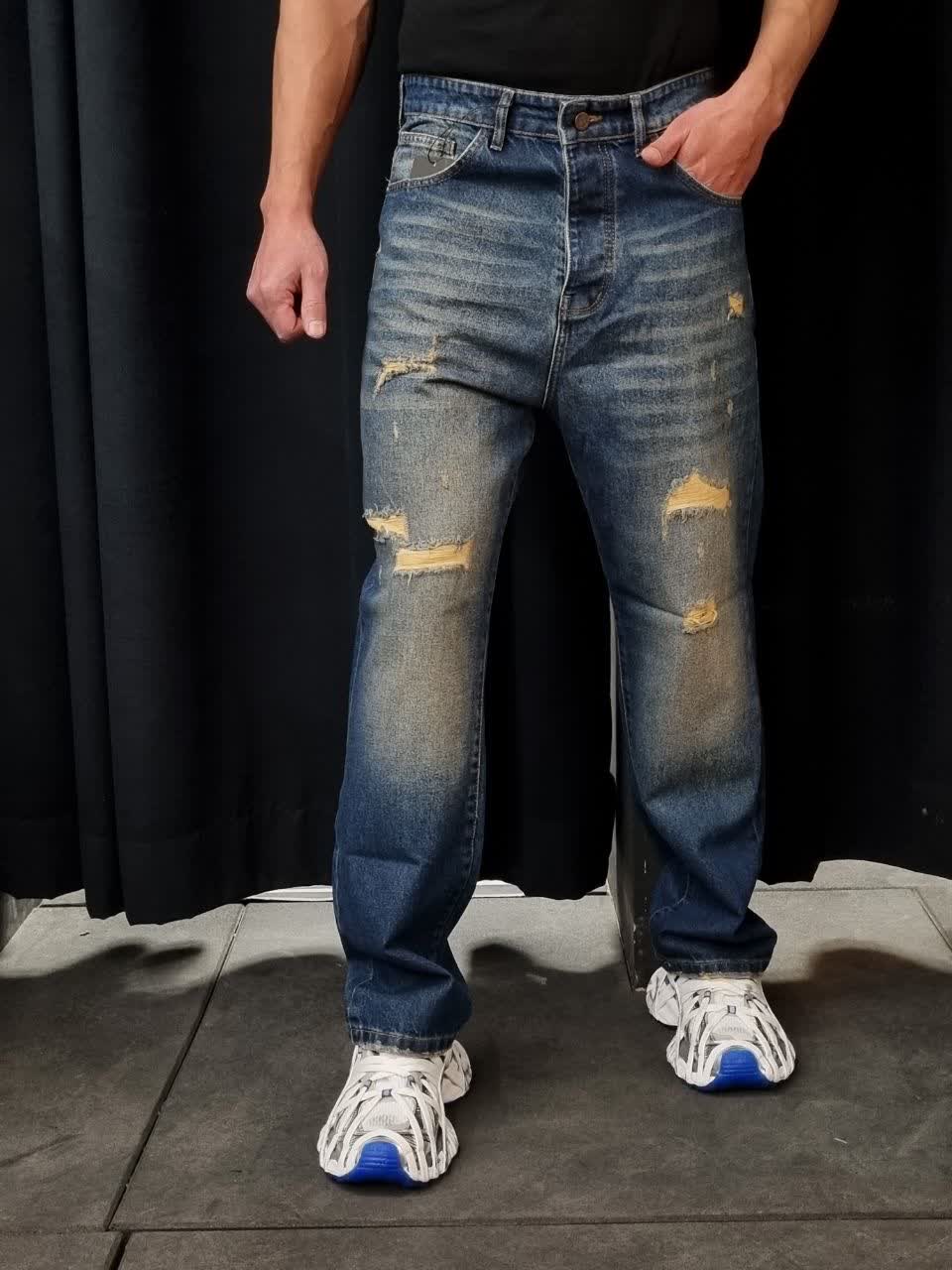 شلوار بگ جین کد2/1204رنگ آبی دیزلی زاپدار سایز 33