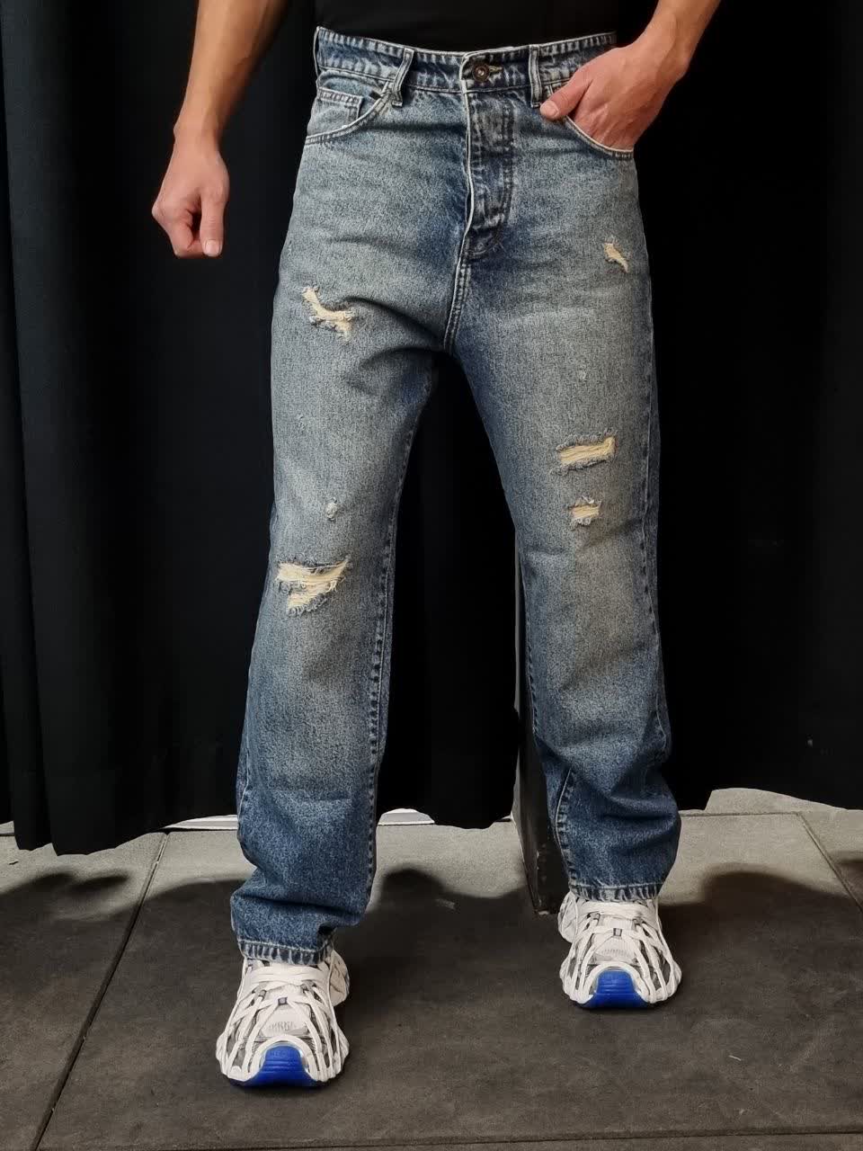 شلوار بگ جین کد7/1204رنگ آبی سنگشور زاپدار سایز 36