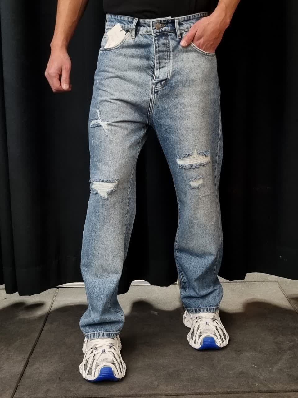 شلوار بگ جین کد6/1204رنگ آبی برفی زاپدار سایز 32