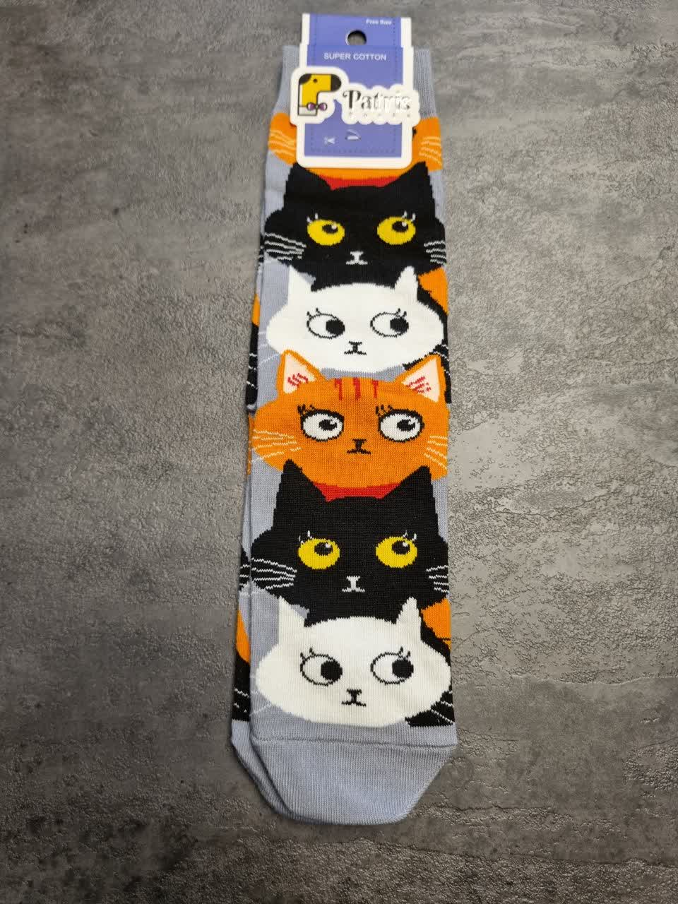 جوراب ساق بلند PATRIS طرح گربه ای رنگ خاکستری