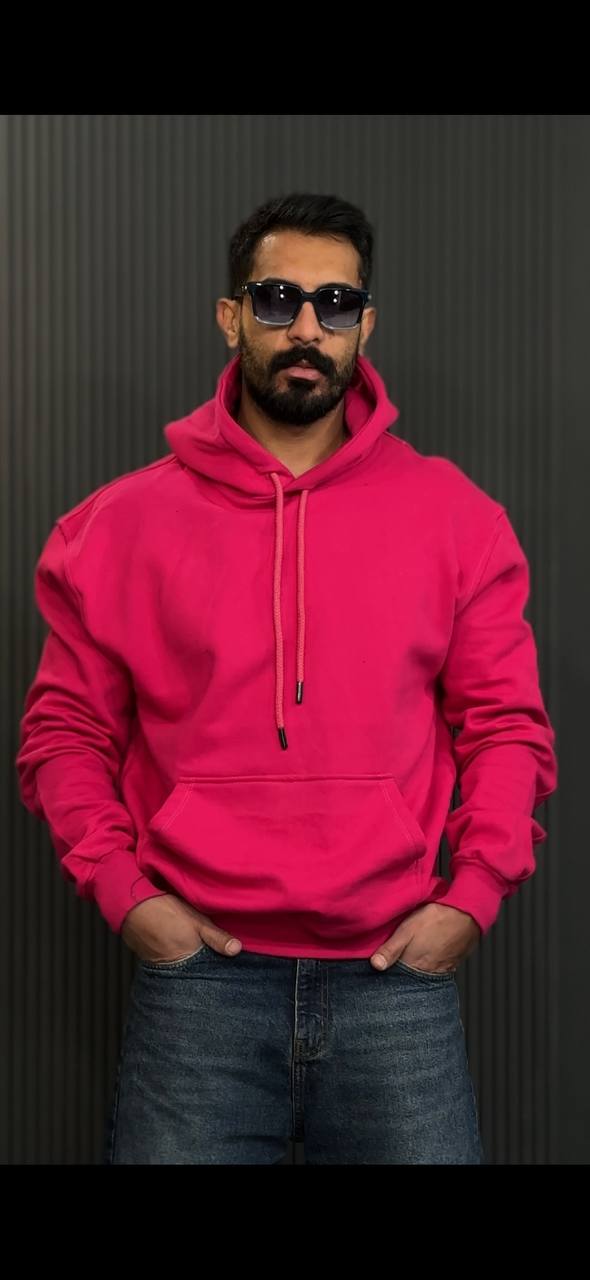 هودی بیسیک پارچه دورس سه نخ خارخورده رنگ سرخابی سایز 2XL