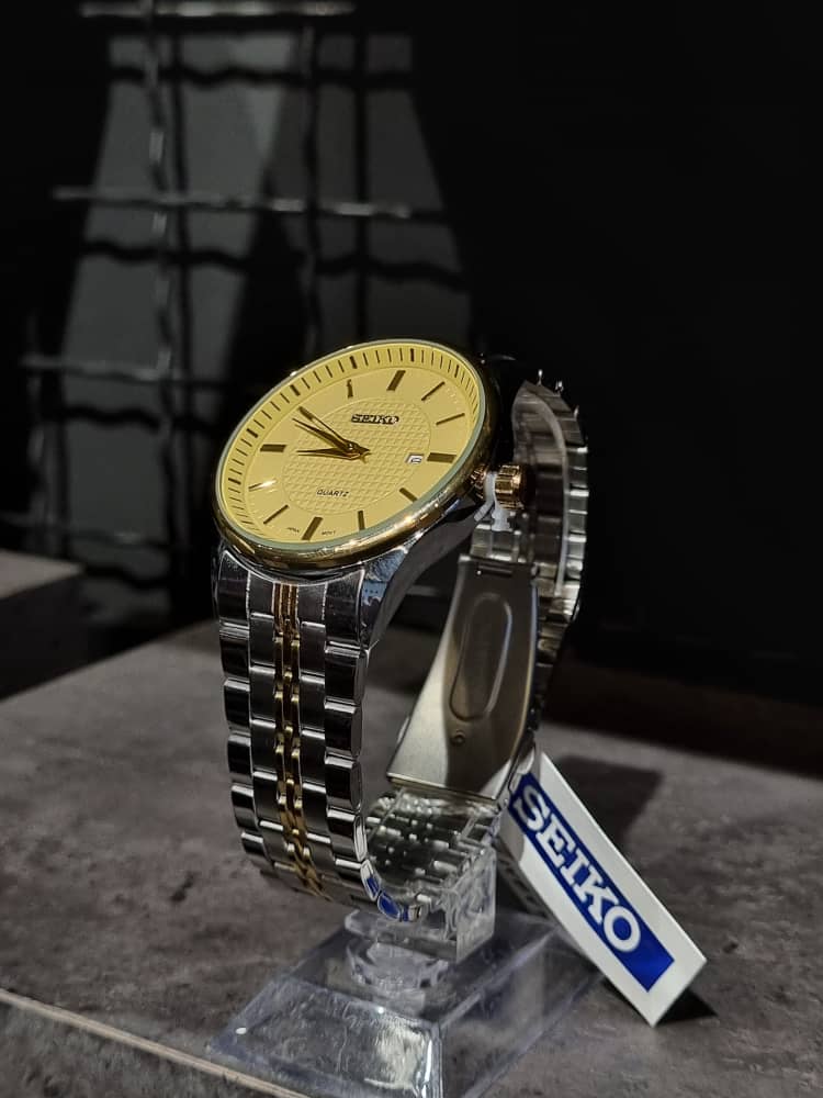درباره ساعت فلزی برند SEIKO رنگ نقره ای طلایی/ صفحه طلایی