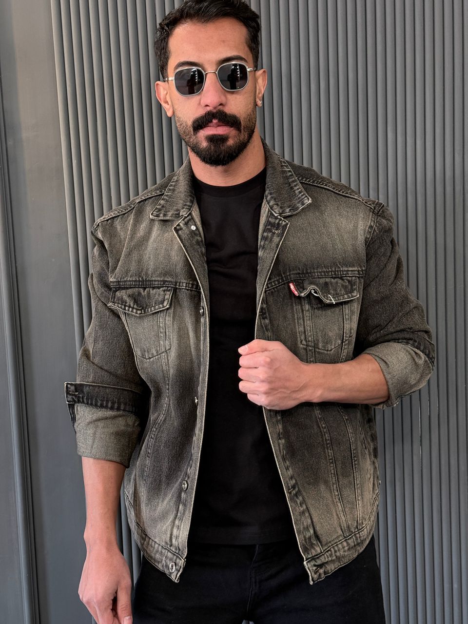کت جین وارداتی کد 12454 رنگ ذغالی شست دیزلی سایز 2XL